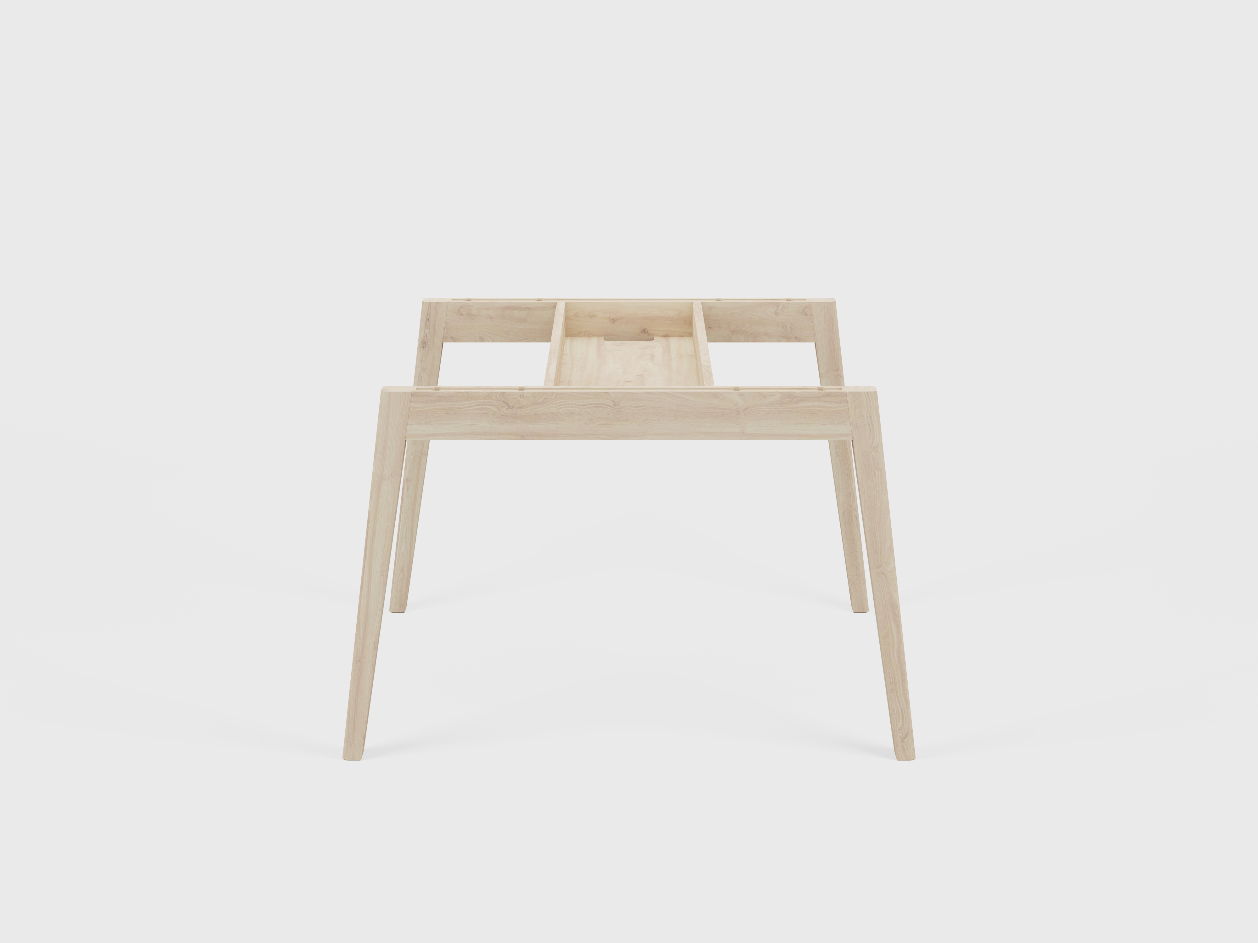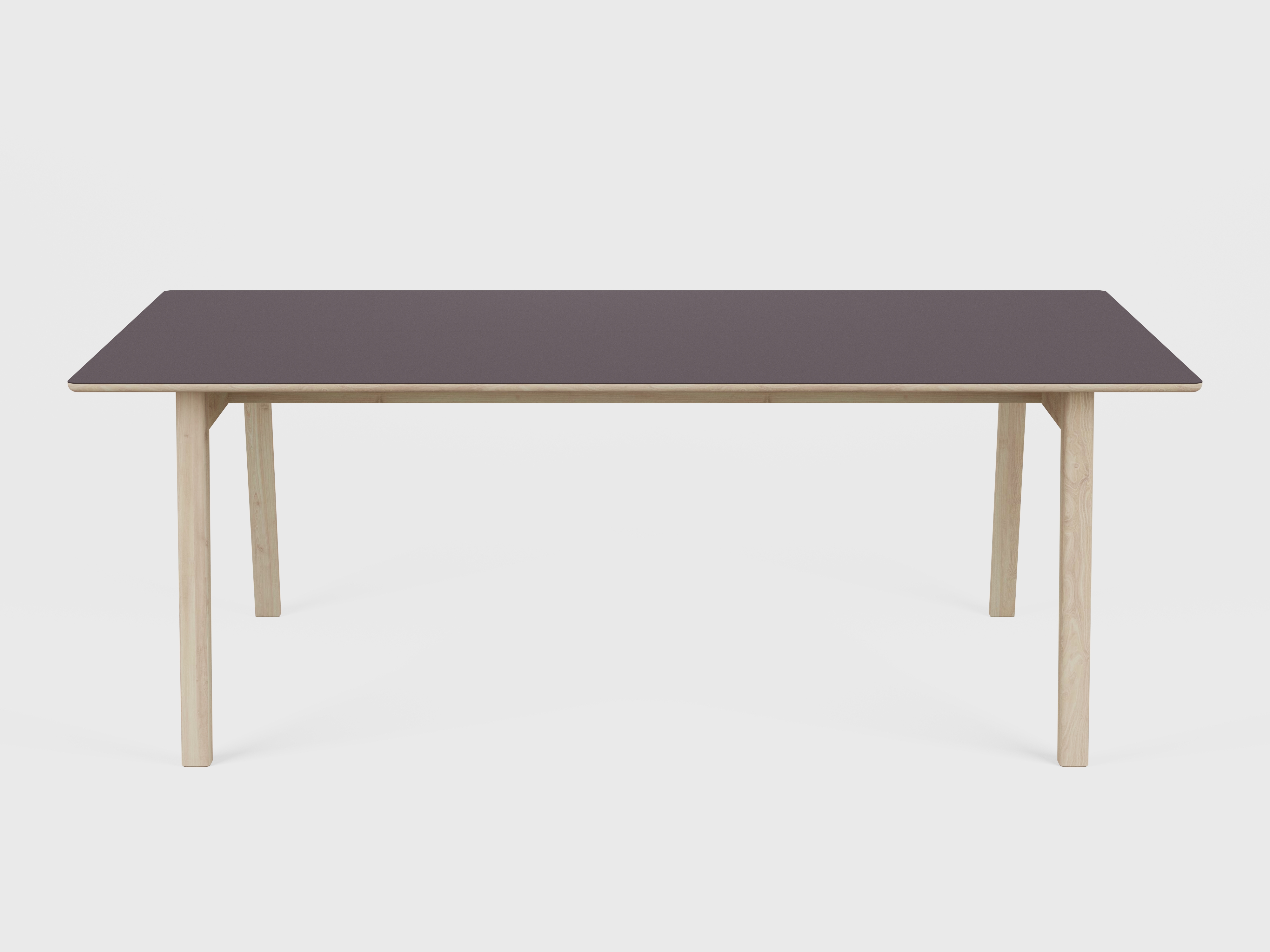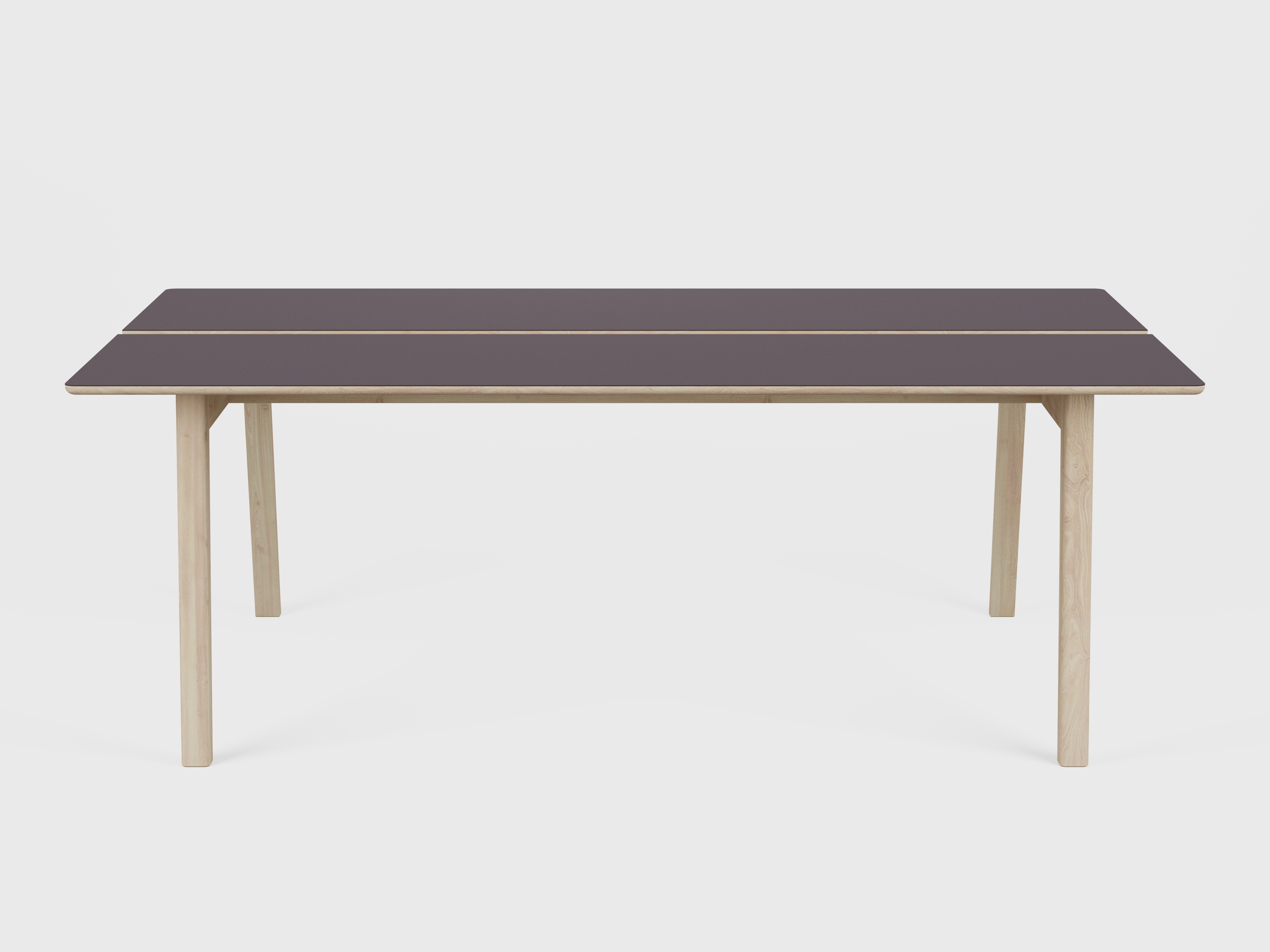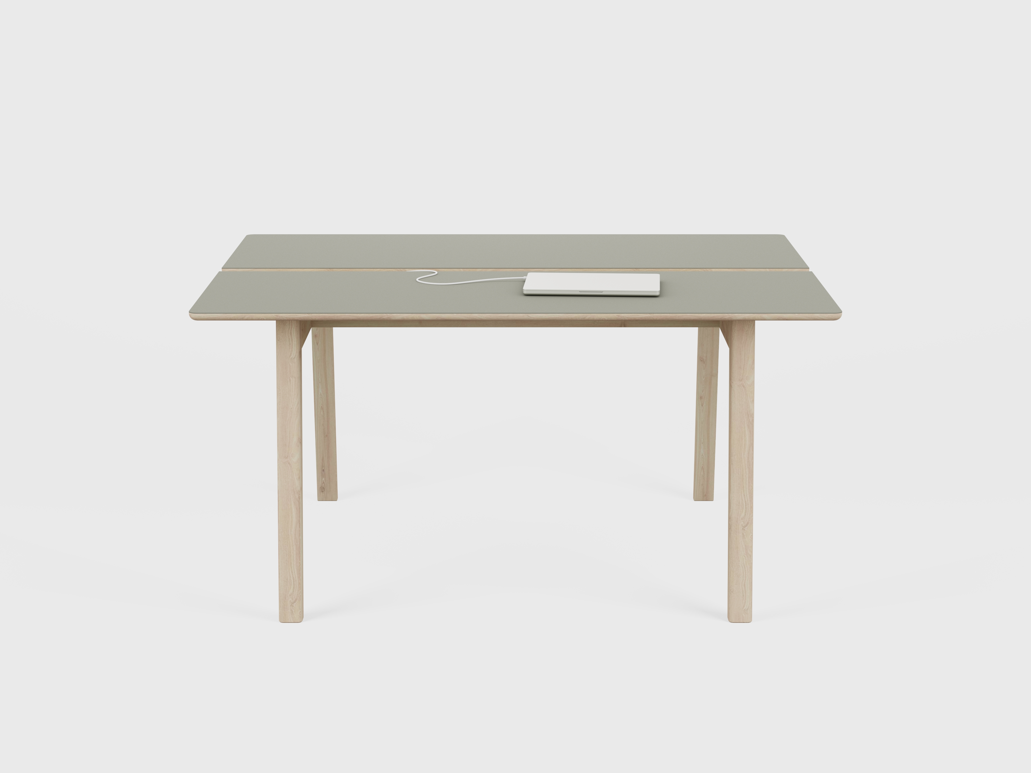 Mirror Desk is a flexible system that combines desk and dining table functions for home use. Two tabletop leaves can be slid open or closed to access an integrated cable tray. This allows for use from two sides as a desk or from four sides as a dining table. The H-shaped base frame allows for seating on all sides.